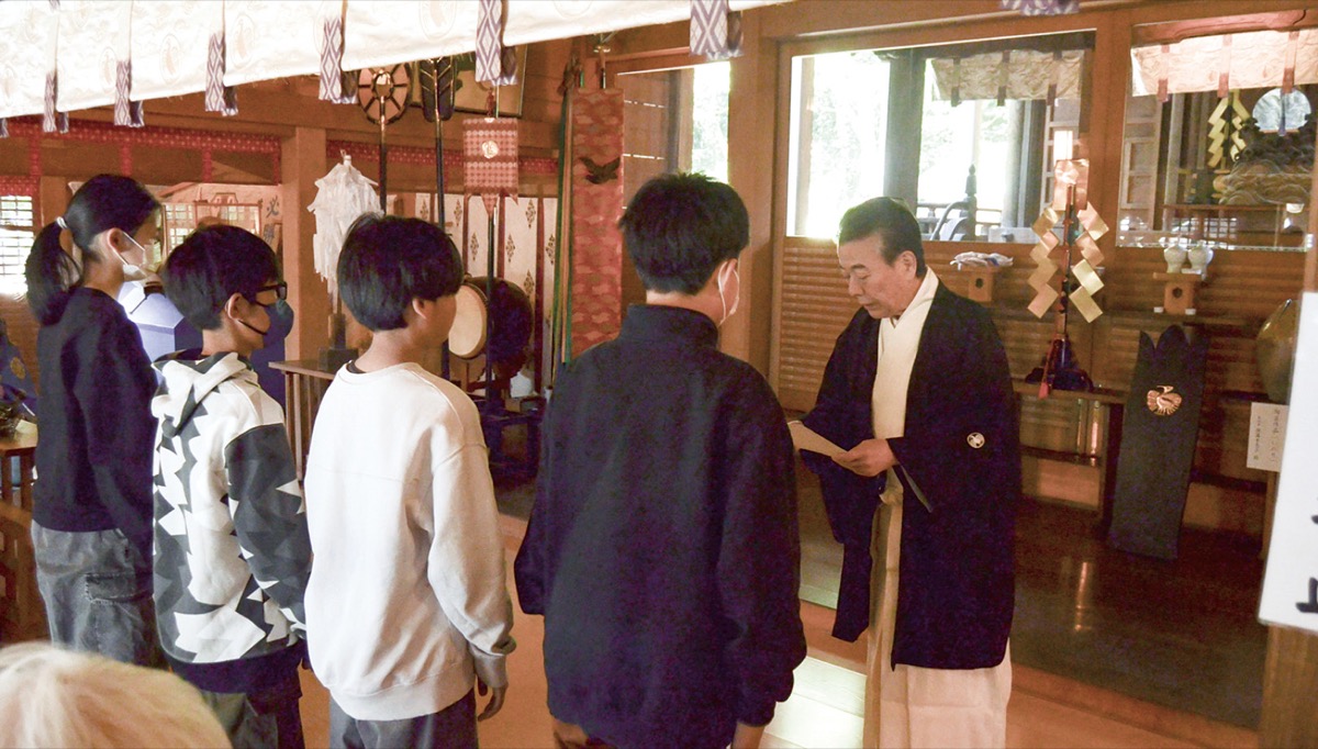 式では、奉納品の一つひとつを参加者に紹介した石川宮司と奉納者の間で、奉納証明書と受取証明書が交わされた。