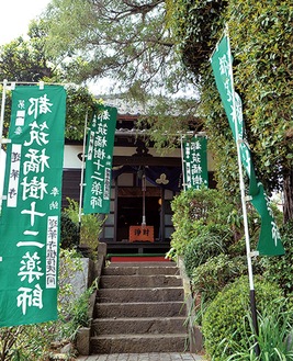 新照山蓮華寺(新羽町・森宏道住職)で4月18日、薬師如来像の開帳が行われた。昨年まで毎年7月に開催していたが、近年の猛暑を見越して、今年から4月開催に変更となった。