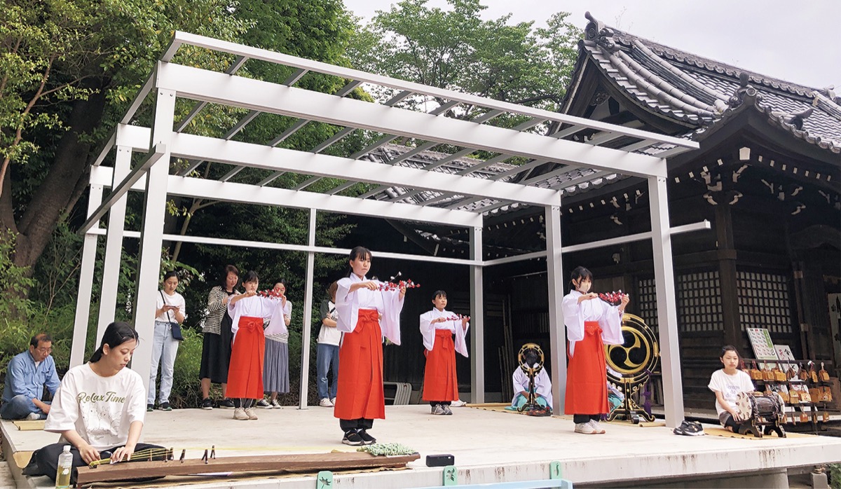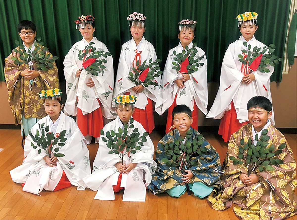 正座をしてあいさつをする、道具を大切に扱う、楽器をまたがない、自分のことは自分でする、最後に掃除をするなど、『自立』をもって、神様の御前で舞う準備をしてきたという児童ら。「巫女舞を奉仕する神社は多いが、装束を自分で着装し、自分でたたんでいるところはほとんどないはず。自慢の教え子たちです」と加藤さんは目を細める。稽古の経過発表として、昨年10月の例大祭で、豊栄舞の1番のみ披露した。