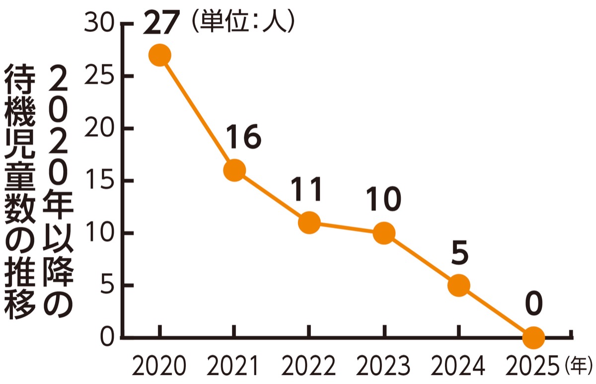 今年度の待機児童は昨年度比で5人減り、12年ぶりに0人を達成。要因として市は、ニーズの高い1歳児の受入枠拡大、送迎支援の推進、医療的ケア児の受入推進、園選びサポートの4つの取組みをあげている。今後もさらにそれぞれの対策を拡充していく方針だ。