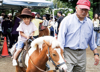 ポニーやヒヨコ、モルモット、チャボなどが集まり、触れあいや餌やりができる子どもたちに人気のイベント。小学3年生までの子どもは、ポニーに乗馬できる。乗馬には「ポニー券」が必要で、当日午前10時30分から正午に会場受付で配布される。予定枚数に達した場合は、早期終了する可能性あり。えさは持参。