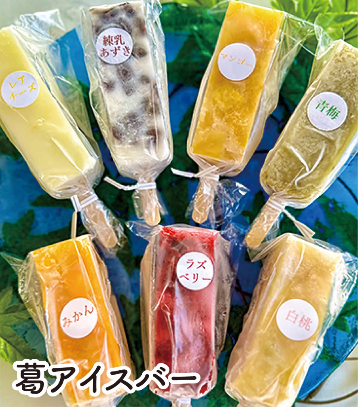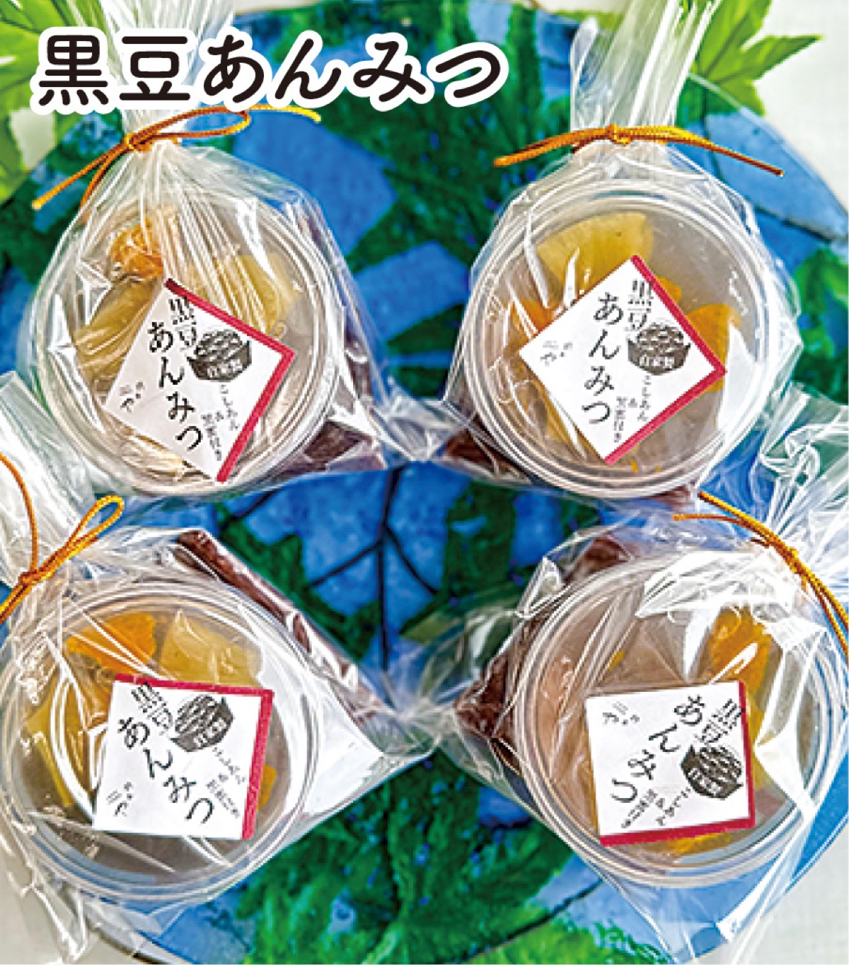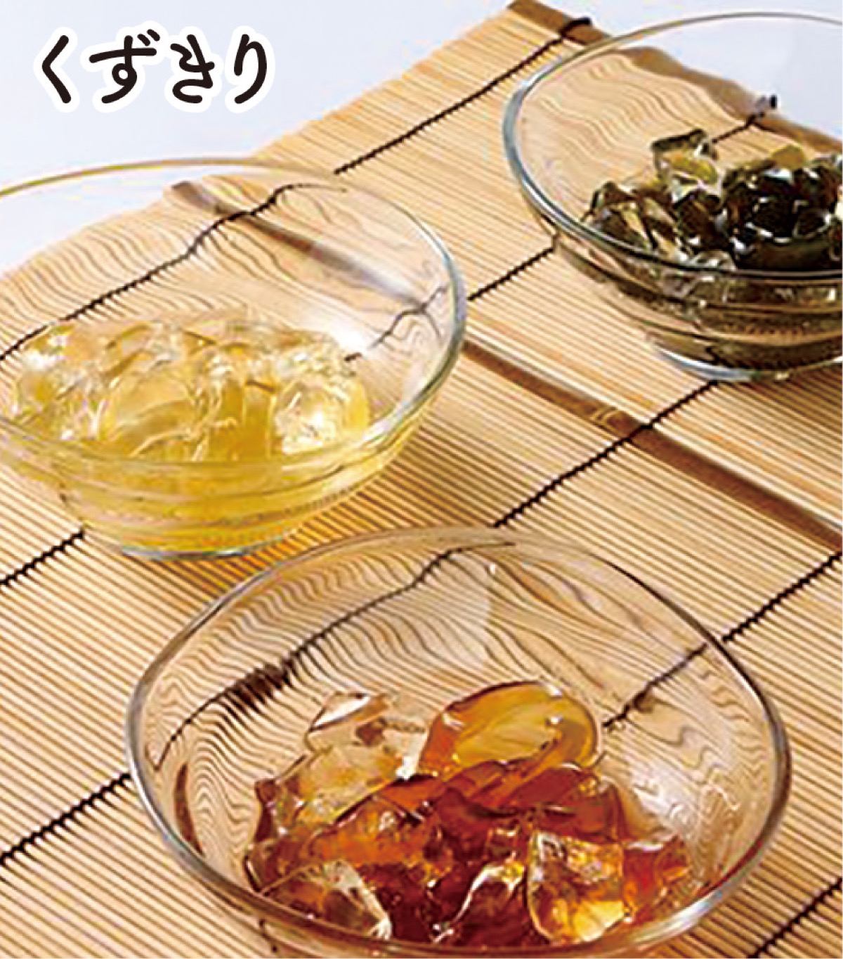 定番人気、溶けてもプルンと食感の「葛アイスバー(250円※冷凍販売)」は青梅や練乳あずき、みかん、ラズベリーなど7種。冷やした「黒豆あんみつ(300円)」は皿にあけ黒蜜と自家製こしあんをかけて、崩して食べる新しいあんみつ。弾力のある食感とつるんとしたのど越し「くずきり(280円)」は黒蜜、抹茶蜜、梅蜜の3種。氷を入れてどうぞ。全て税込。