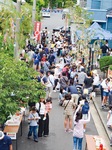 新吉田地区の5町会(新生町内会・東町会・いつな町内会・南町会・新和会)とあすなろ連合町内会のそれぞれの会館が建ち並ぶ「会館通り」で7月12日、五町会合同企画「ファイブ七夕まつり」が開催された。地域の子連れの家族らが多く集まり、短冊に願い事を書いたり、各町会それぞれが催した射的やスーパーボールすくい、お菓子釣りなどのゲームを楽しんだりしていた。