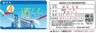 横浜市民で、新たに65歳になった人には、介護保険証と一緒にカードが自宅へ郵送される。それ以外の人は、区役所高齢・障害支援課か、そごう横浜店(西区)6階ミレニアムカウンターで受け取れる。65歳以上の横浜市民であることがわかる公的証明書(保険証、運転免許証等)を持参。