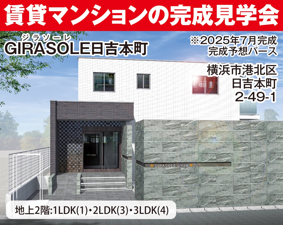 神奈川・東京エリアで731棟1万135戸の建築実績を誇る朝日建設(本社・相模原市)は7月26日(土)・27日(日)の午前10時から午後4時まで、日吉本町に完成した賃貸マンション「ジラソーレ日吉本町」の完成見学会を開催する。
