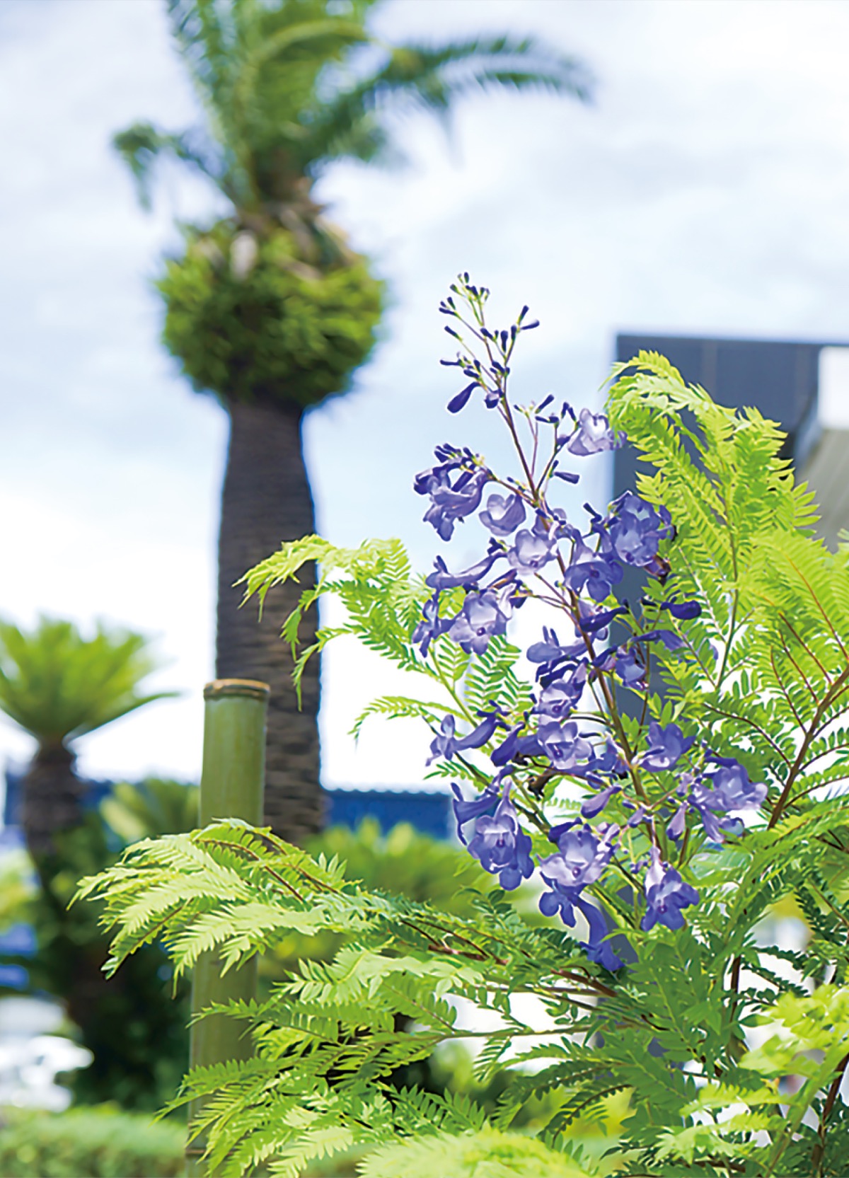 ジャカランダは世界三大花木の一つ。南米原産で、通常は5月〜6月に花を咲かせる。宮崎県日南市南郷町で見ることのできる約1000本の群生林は日本唯一と言われている。