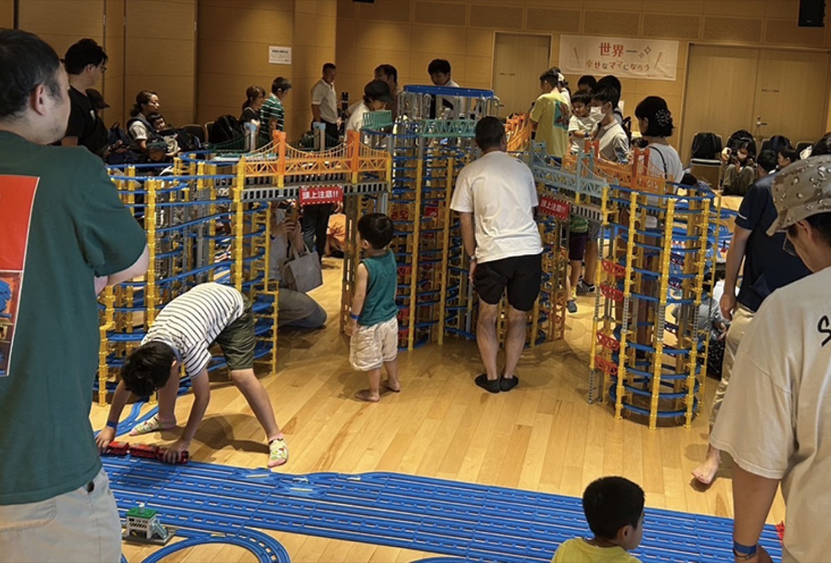 ミズキーホールで7月26日、27日、子どもたちがおもちゃの電車をレールに走らせて遊ぶ「でんしゃであそぼう!」が開催された。(一社)ママスタイルと(株)パパカンパニーの共同企画。