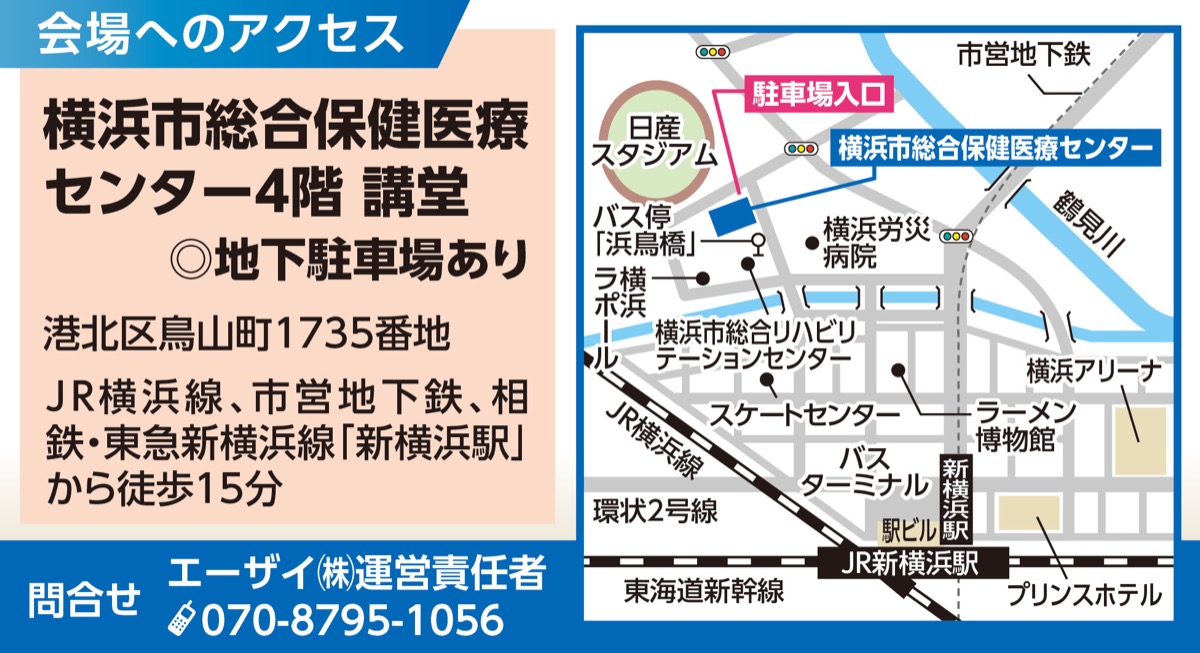 第2部は現地講演。「認知症との付き合い方―早期に診断を受けて―」と題して若年性認知症当事者が講演するほか、横浜市総合保健医療センターの塩崎一昌センター長が登壇し、「認知症になっても安心できる社会へ―診断後の支援体制や取り組みについて―」の講演が行われる。