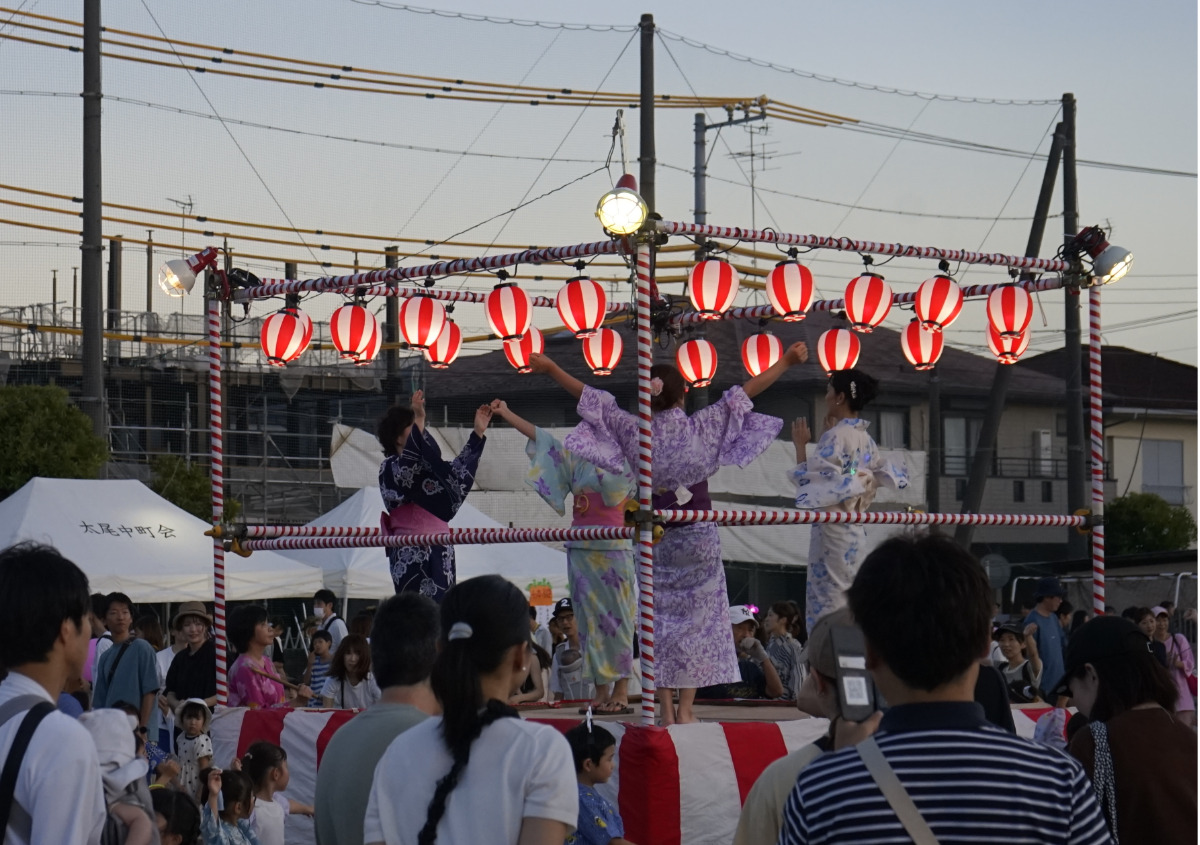 横浜市立大綱中学校の校庭で7月26日、27日の2日間、大倉山の三町会(太尾南町会、大倉山明和会、太尾中町会)合同盆踊り大会が行われた。