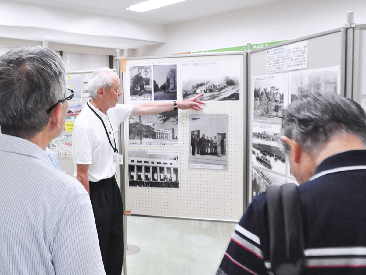 8月2日に行われたミニレクチャーでは、運営委員の一員で、長年ガイドを務める佐藤宗達さん、田中剛さんが約60枚のパネル写真を解説した。「地下壕の存在や我々の活動を広めていきたい」と佐藤さん。
