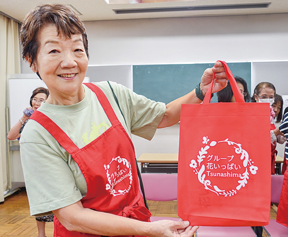 6日の集会では、支援内容である同グループのロゴが印刷されたエプロンや名札、園芸用具などの活動グッズを配布。また、課題点である水源場所確保や活動エリアのばらつきについても話し合われた。参加したメンバーからは「商店街の人が水やりをしてくれて。輪が広がってうれしい」という喜びの声も上がっていた。真島さんは「赤エプロンを見かけたら、ぜひ声をかけてください」と笑顔で話す。綱島商店街連合会の中森伸明会長は「綱島は昔から花植えや緑化に力を入れている。協力して華やかなまちを保ちたい」とした。