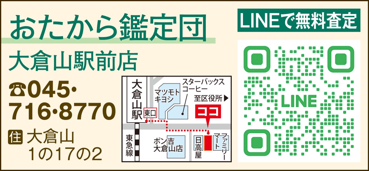 捨てるは簡単だが、中には価値ある品も。おたから鑑定団大倉山駅前店には遺品整理士のスタッフがおり、残すべきもの、売るべきものを適切にアドバイス。「まずはLINE無料査定を!駅徒歩1分の店舗で相談も大歓迎です」と担当者。