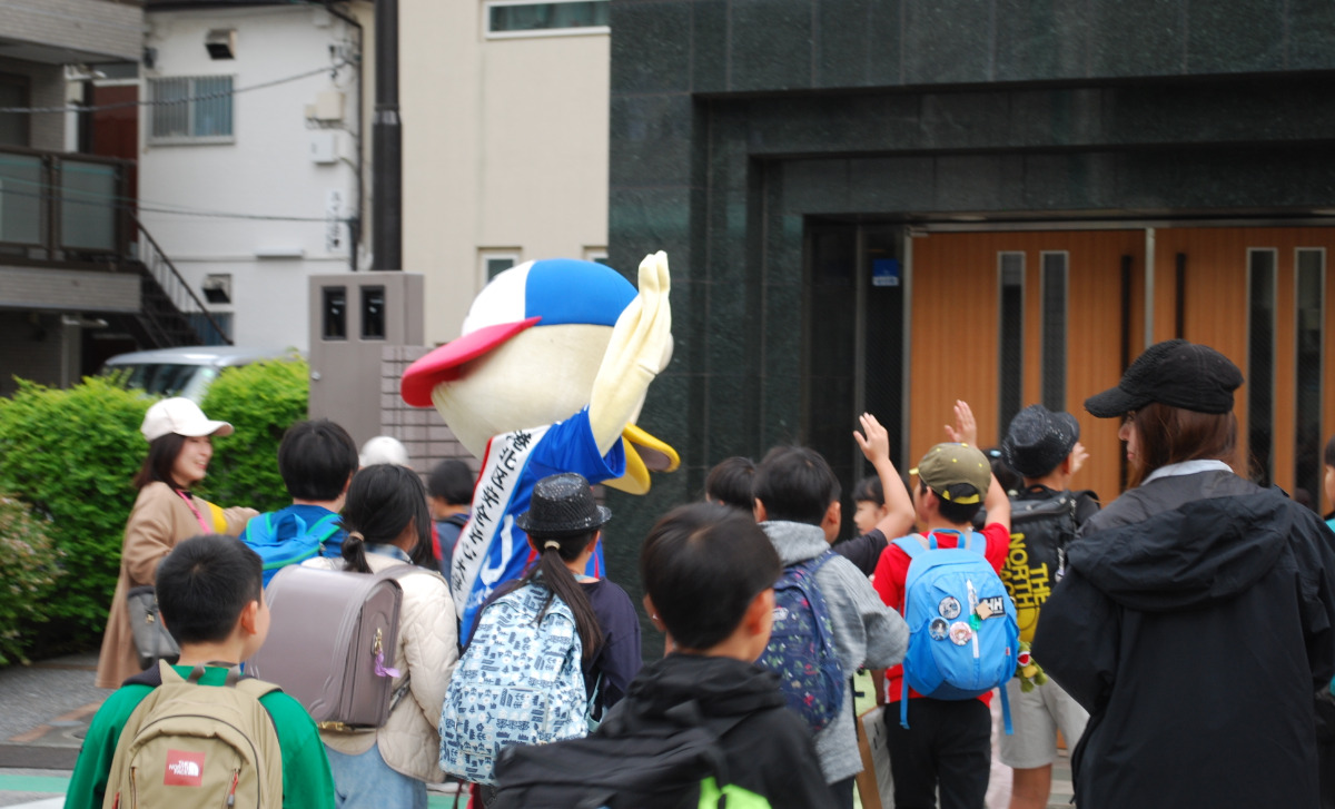 日吉台小学校で10月28日、交通安全啓発として下校時の見守り活動が実施された。同活動は、港北警察署、横浜F・マリノス、港北土木事務所、港北区役所の4者が連携したもので、横浜F・マリノスの「マリノスケ」、土木事務所の「どぼくねこ」、両者のマスコットキャラクターが参加した。下校時の子どもたちと触れ合いながら、道路を渡る前の左右確認や横断歩道を一緒に歩くなどして交通安全を呼び掛けた。