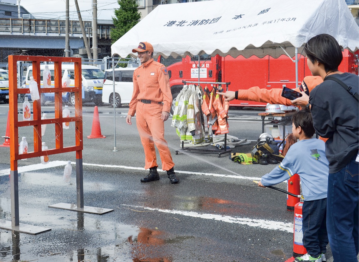 同イベントは、地域住民に対し、放水体験、消防車乗車体験を通し、楽しみながら防火・防災意識向上を図るために企画された。会場では消防車を含む”はたらく車大集合”の車両展示や、港北消防署、港北消防団、資源循環局、自衛隊などの公的機関・団体がブースを出展。スタンプラリーも行われ、地域の防火・防災に関する活動の情報が提供される機会となった。