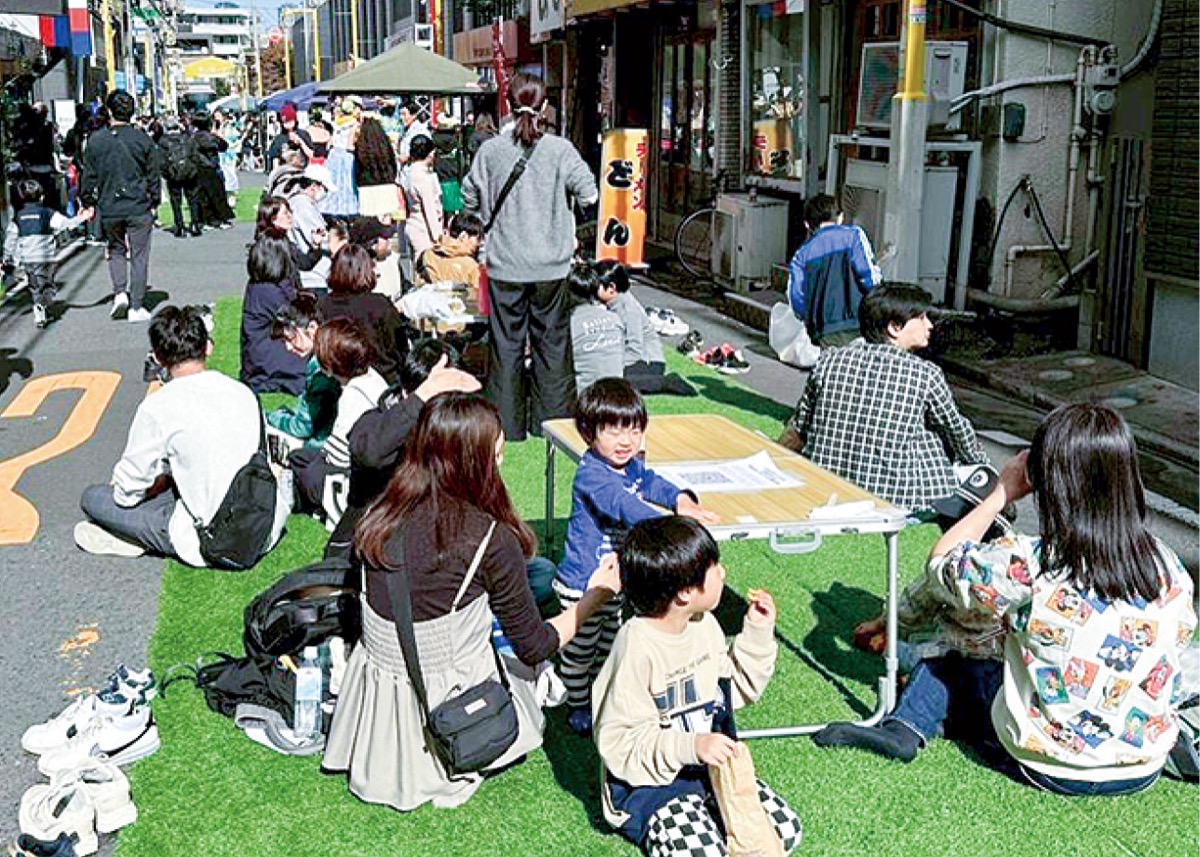さらに会場であるサンロード通りの一角には人工芝が敷かれ、親子が休憩や食事に利用しつつ、ステージでの催しを楽しんでいた。