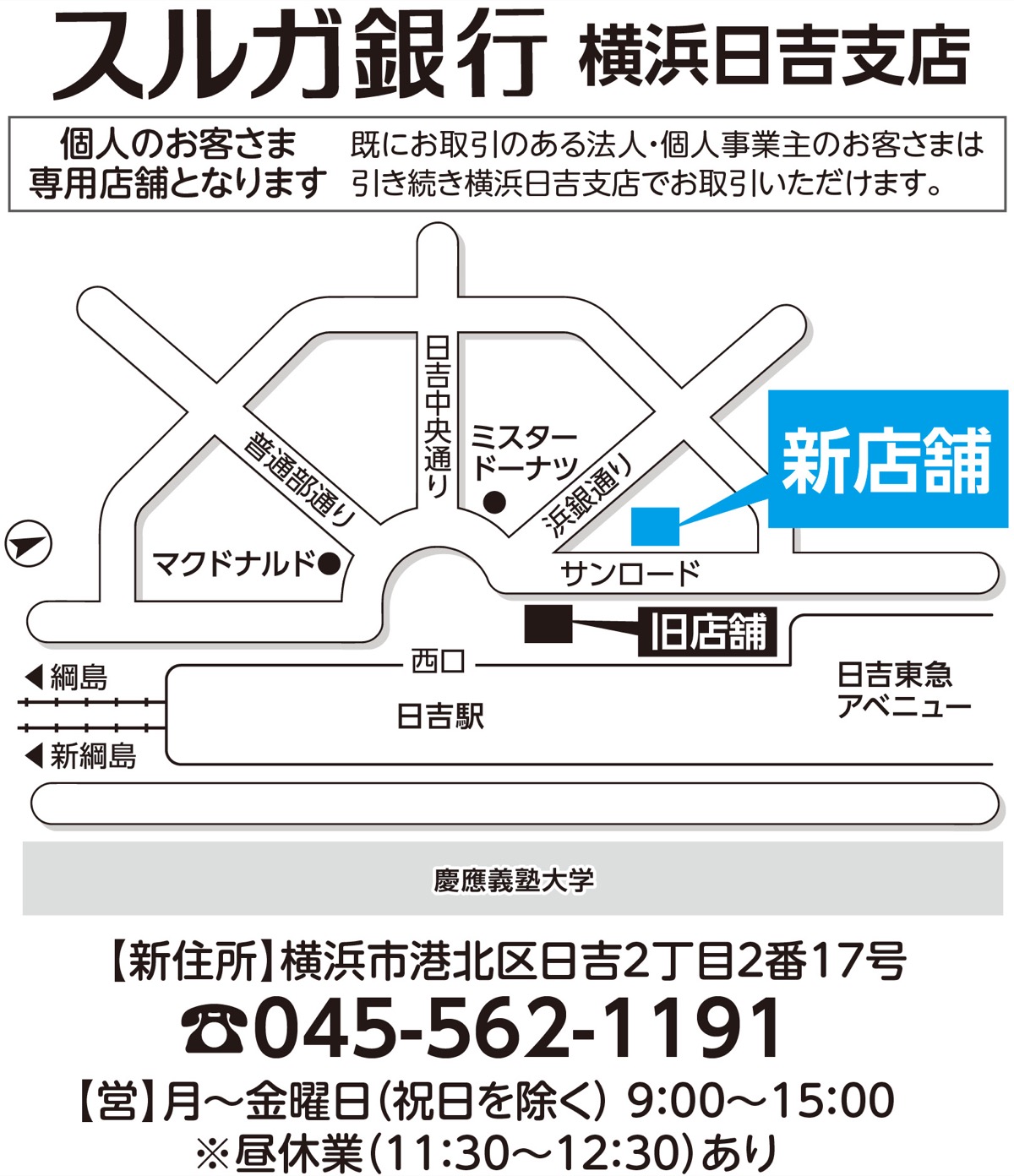 スルガ銀行横浜日吉支店が11月10日に移転リニューアルオープンした。移転先は旧店舗向かいのビルで、新たに個人向けサービス提供に特化した「個人のお客さま専用店舗」となる(既に取引のある法人・個人事業主のお客さまは取引継続)。