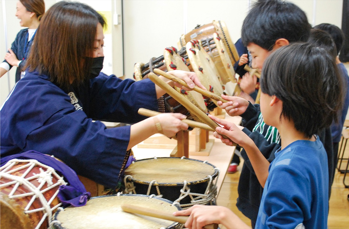 綱島囃子保存会から5人のメンバーが訪れ、同校3、4年生に「綱島囃子」を披露。「てけてんつく・ててつく・てんつくつ」といった独特な太鼓のリズムや「なんなんちきち・なんちきち」といった不思議な鉦(かね)のリズムに、児童らの体も自然と揺れる。同校の4年生は同保存会の囃子を聴くのは2回目。そのため体験タイムでは、上達のスピードも速く、保存会のメンバーから「のみ込みが早い」と褒められると、恥ずかしがりながらも、誇らしげに演奏する児童の姿があった。
