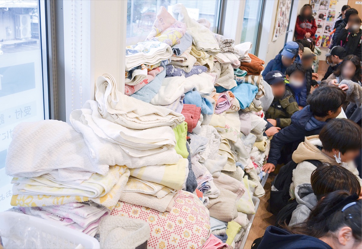 物資として選んだのは、動物の敷物や掃除に欠かせない「タオル」だ。荒巻沙弥さん(12)は「以前訪問した際に、タオルが不足しているという具体的な悩みを聞き、一番力になれると思った」と振り返る。校内放送やポスター、自作の動画で全校生徒や保護者に協力を呼び掛けた結果、わずか1週間で約300枚のタオルが集まった。