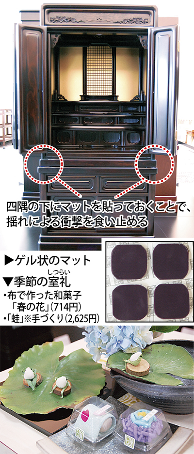 地震への備えに注目が集まる今、仏壇の対策も考えておきたい。実際、同店には、”お仏壇が倒れないようにする方法はないか”との問合わせが増えているという。