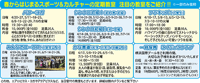 まずは、今春からスタートする新教室「パワーヨガ」。「ずっと気になっていた」という方も多いはず。この機会に是非!