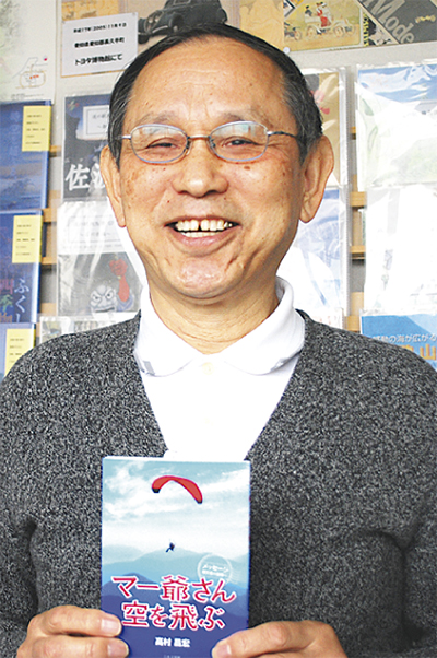 作品は、主人公の”マー爺さん”がモーターパラグライダー(以下モーパラ)で大空を舞う冒険物語。執筆前、実際にパラグライダーの体験を行うなどしてリアリティを出したほか、災害援助におけるモーパラの可能性にも触れている。