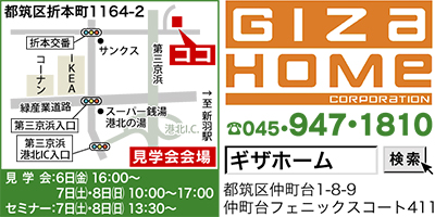 再生可能エネルギーの新分野として話題を呼ぶ地中熱。注文住宅専門のギザ・ホームが見学会で紹介するのは、夏涼しく冬暖かい地中の温度を利用した空調システム「ジオパワー」を導入した住宅だ。ジオパワーは大手複合施設(イオンレイクタウン)やコンビニ(セブンイレブン)でも導入されており、全国でトップの実績。住宅に於ける導入件数は1400件以上となっている。ジオパワーを設置すれば、自然の力で冷暖房の電気使用半減やエアコンに頼らない生活が可能となるという。また、ギザ・ホームでは耐震+制震装置「ジオフォルテ」を全ての住宅に標準装備。さらに、災害時には家族が自力生活できる家として水道、電気、ガスのライフラインを独立化した「エコロジックステージ」を開発した。