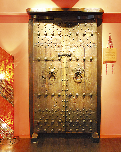 触れればご利益のあると伝わる近江商人の金庫扉。その真偽のほどはご自身でお試しあれ。