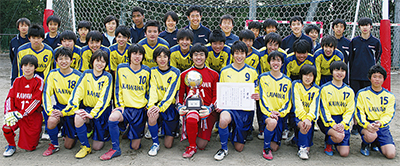 横浜市内サッカーチームの頂点を決める日産スタジアム杯。中学生の部で都筑区代表として初出場した川和中学校サッカー部が勝ち進み、2月17日に行われた決勝戦で桐蔭学園中(青葉区)を下し、優勝を果たした。