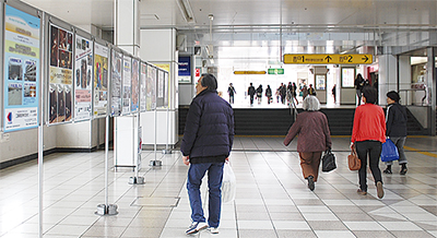当日は、建設会社や畳店など、13の企業・団体がパネルを展示。同駅を利用した人が足をとめ、興味深そうに眺める姿が見られた。展示を見た人は、「地元の企業のことがわかるのがいいですね」と話した。