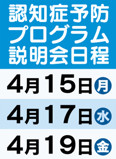 海外の研究では、週1回程度パソコンを使用すると認知症のリスクは最大40%軽減されるとするものもある。認知症の原因物質アミロイドβは認知症発症の20〜30年前から蓄積が始まるため、健康な時から予防することが重要とされる。日頃モノ忘れなどが気になる人はぜひ参加を。