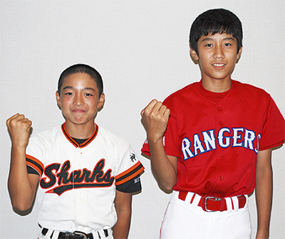 金城君は区内強豪の川和シャークスの捕手。強肩を武器に盗塁を阻止する。また3番打者を務め、攻撃面でも要として活躍する。またムードメーカーとして、チームメートへの声かけも忘れない。金城君は「自分の実力を試したい。レギュラー争いもあるけど、楽しんで練習します」と話すなど、両選手とも気合十分だ。