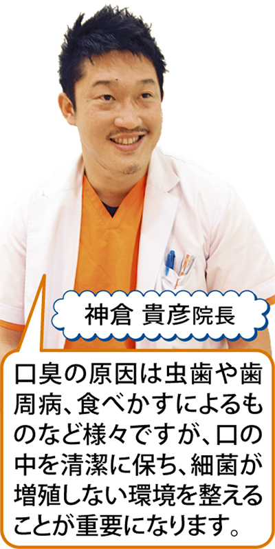 かみくら歯科によると、口臭のほとんどは「口腔内の細菌が原因」と指摘した上で、「日常生活の中で睡眠時や緊張してストレスを感じる場合なども唾液の分泌が減り口臭が生じやすくなります」と話す。