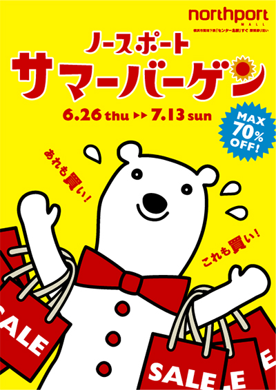 センター北駅前のノースポート・モールで本日から7月13日(日)までのサマーバーゲンがいよいよ始まる。