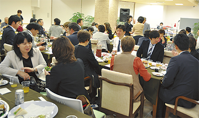 東山田の有料老人ホーム、アイリータウン都筑(早渕3の34の60)で10月20日、「あいちゃん友の会」(松原慶子会長)の発足記念パーティが行われ、約60人が参加した=写真。