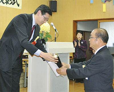 今年の菊花展出品数は昨年より多い339点で、そのうち最優等または優等に選ばれたものは約70点。当日は受賞者に賞状やトロフィーなどが手渡された。