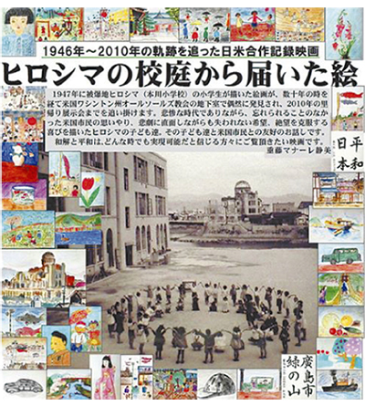戦後間もない頃、被爆地そばの本川小学校の児童らが描いた絵画が2006年にアメリカの教会で偶然発見された。これらの絵は当時の広島の様子や子どもたちの生活などを描いたものなどさまざま。その後、教会の信徒らの手で修復された作品は教会で保存されており、2010年夏には広島県で里帰り展示会が実現した。同作品はこの一連の流れを追った日米合作のドキュメンタリー映画。同実行委員会の福富洋一郎事務局長は「子どもたちの持つ力を強く感じる映画です。横浜に住むみなさんにもぜひ観て、何かを感じ取ってくれたらうれしいです」と参加を呼びかけている。
