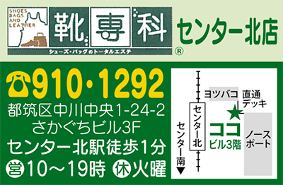 靴やバッグの修理やクリーニングは専門店にお任せを!センター北駅から歩いてすぐの「靴専科センター北店」は、愛用品の日常的なケアはもちろん、「もうダメかも」と諦めてしまったものまで再生してくれる評判のお店。