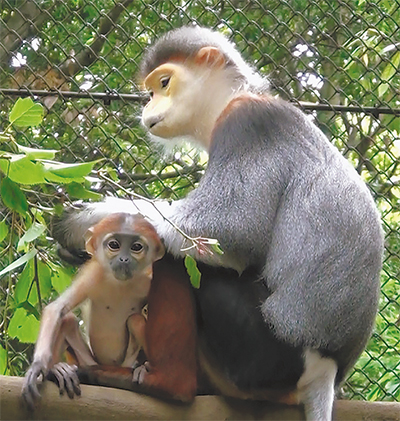 ベトナムやラオスなど熱帯雨林に生息するリーフイーター(葉喰いザル)。カラフルな毛色が特徴で「世界で一番美しい猿」と呼ばれている。国内の飼育は同園のみ。