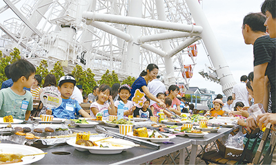 モザイクモール港北は食材を持ち込むことができるのが特徴の一つ。参加者がそれぞれ好きなものを持ち寄り、バラエティーに富んだ料理を味わうことができる。