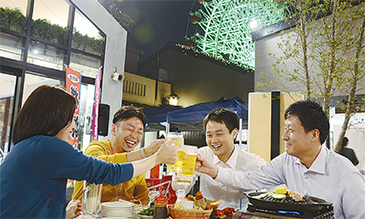 センター北駅前の商業施設「プレミアヨコハマ」と「モザイクモール港北」の屋上で、ビアガーデンとバーベキューがスタートし、人気を集めている。