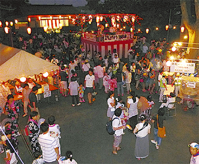 佐江戸町の杉山神社で8月2日、恒例の夏祭りが開催された=写真。地域住民の協力でわたあめなどの出店があり、やぐらを囲んで盆踊りも。近隣の子どもたちでにぎわった。