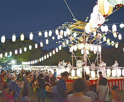 北山田盆踊り大会が8月1日、2日、山田富士公園で開かれ、約1万人の来場者で賑わった=写真。中央にはやぐらが設置され、浴衣を着た参加者が小気味の良い太鼓の音に合わせご当地音頭を踊った。主催した北山田町内会の田村孝男会長は「怪我や事故のないように楽しんでください」と来場者に呼びかけた。