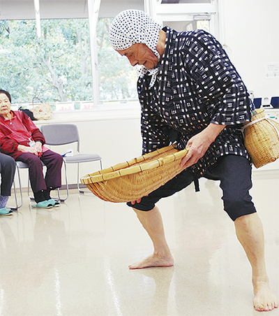 横浜どじょう踊りの会、代表の小泉行正さん(80)=北山田在住=が11月26日、新栄地域ケアプラザ(新栄町)でどじょうすくいの踊りを披露した。