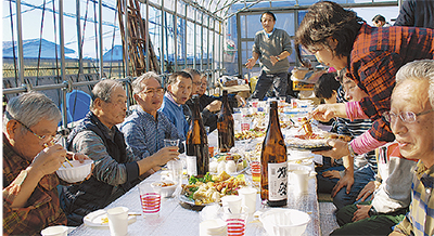 同園は横浜市の栽培収穫体験ファーム事業として、市民に農地を開放している。収穫祭は農園体験利用者が集まり、交流する機会になっており、当日は利用者らの畑で収穫された里芋を使った芋煮などが振る舞われた。山形出身の利用者からのアドバイスをもとに作ったという。