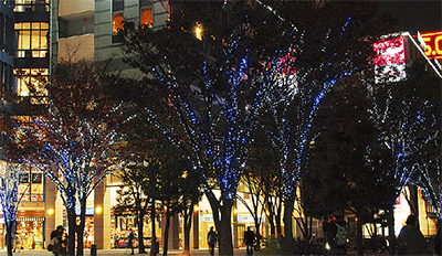 センター南駅前の風物詩となった冬場のイルミネーションと春の巨大こいのぼり。金子社長が会長を務めるセンター南地区商業振興会が主催しているイベントだ。イルミネーションはブルーとホワイトのLED電球、約2万4000個を設置。その光は、買い物客の家族連れや通勤・通学のセンター南駅利用者を優しく照らしているようだ。
