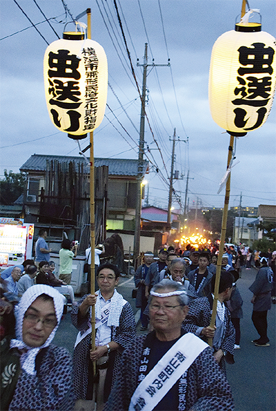 これは、かつて田畑が広がっていたこの地区の害虫を松明の灯りで追い出して米の豊作を願う行事。以前は県内の他地区でも実施されていたが、現在も行っているのは南山田のみ。2005年には横浜市無形民俗文化財の指定を受けており、貴重な行事を一目見ようと区内外から多くの観客が足を運んでいた。