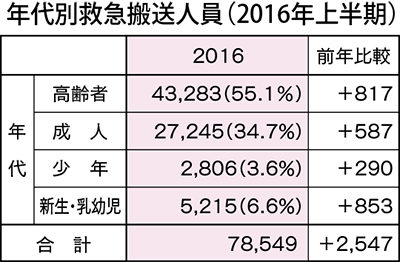 横浜市消防局は7月22日、2016年上半期(1月1日〜6月30日)の火災・救急の概況を発表した。救急出場件数は前年同期より2910件増加の9万227件(搬送人員7万8549人)で、過去最多を更新した。