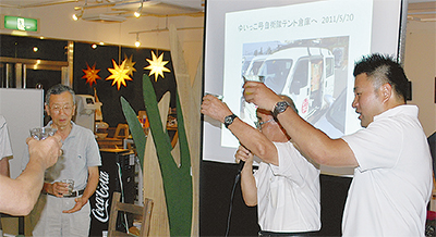 ゆいっこ花巻の大桐啓三代表(68)は報告会に参加し「直後は荷物を積んでいくのにすごく役に立った。今は沿岸部にほとんど行っていない。現在は花巻市内に住む人が、新しいコミュニティを作れるようにサポートしている」と現状を説明した。その後、参加者は岩手県産の食材を堪能し、帰還を祝った。