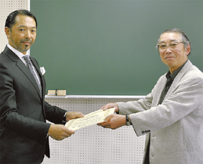 (株)日能研関東(小嶋隆代表取締役/都筑区中川中央)は10月、子ども用の英語教材500セットを県内児童福祉施設などに寄贈。今月4日、神奈川県社会福祉会館で、施設を代表する神奈川県児童福祉施設協議会の鶴飼一晴会長から感謝状の贈呈と、子どもたちから託されたお礼の手紙を手渡す授与式が行われた。