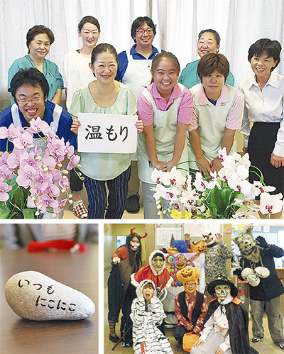 施設のハード面もさることながら、入居者に対する介護・看護スタッフの「温もりある寄り添い」が最大の特徴だ。スタッフの手作りイベントにとびきりの笑顔を見せる入居者の写真がこのことを物語っている。所長の天明理佳さんは「職員もご入居者様もいつもにこにこ、笑顔で楽しい生活を送るサポートを心掛けています」と話す。天明さんの思いを感じた入居者が「いつもにこにこ」と書かれたペーパーウェイトを所長にプレゼントしたというエピソードもあるほどだ。